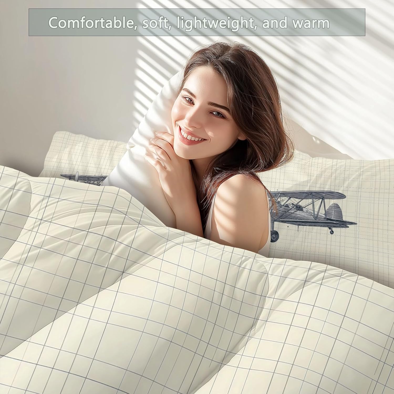 Transform Your Bedroom with Style and Comfort Key Features: Excellent Craftsmanship Hidden stitching design secures the filling in place to avoid shifting and clumping while presenting a original look of the comforter. Made of light brushed & pre-washed microfiber, with high tensile strength, comforter sets are durable for longtime use. Soft and Cozy Our comforter features breathable microfiber filling, offering lightweight fluffiness and exceptional comfort. The skin-friendly fabric provides softness, while the hydrophilic treatment ensures quick moisture absorption, fast drying, and temperature regulation for a cooler, drier, and warmer sleep experience. All-Season Comfort This comfortable not too thick, with a luxuriously soft and lightweight fill, it is truly a season bedding collection, it will keep you warm but not make you sweat. Enjoy the airy feel of the comforter in warmer weather or snuggle into its warmth when temperatures drop. Easy to Care Machine wash on a delicate cycle with cold water. Sun-dry or tumble dry on low heat. Do not bleach or iron. Due to vacuum packaging, the comforter may arrive compressed. Simply expose it to air and gently tap it, and it will fluff up nicely after a few hours. Perfect for Any Room This bedding set is the ideal addition to any bedroom. Whether you’re looking for a new comforter for your guest room, a gift for a loved one, or simply want to update your own space, this set is designed for comfort and style-making it a must-have for every home. Size 1 x Twim Comforter: 68" x 90" 2 x Pillow Sham: 20" x 26" After-Sales Service Your satisfaction is our priority! For any questions or concerns, our customer service team is available to assist you promptly.
