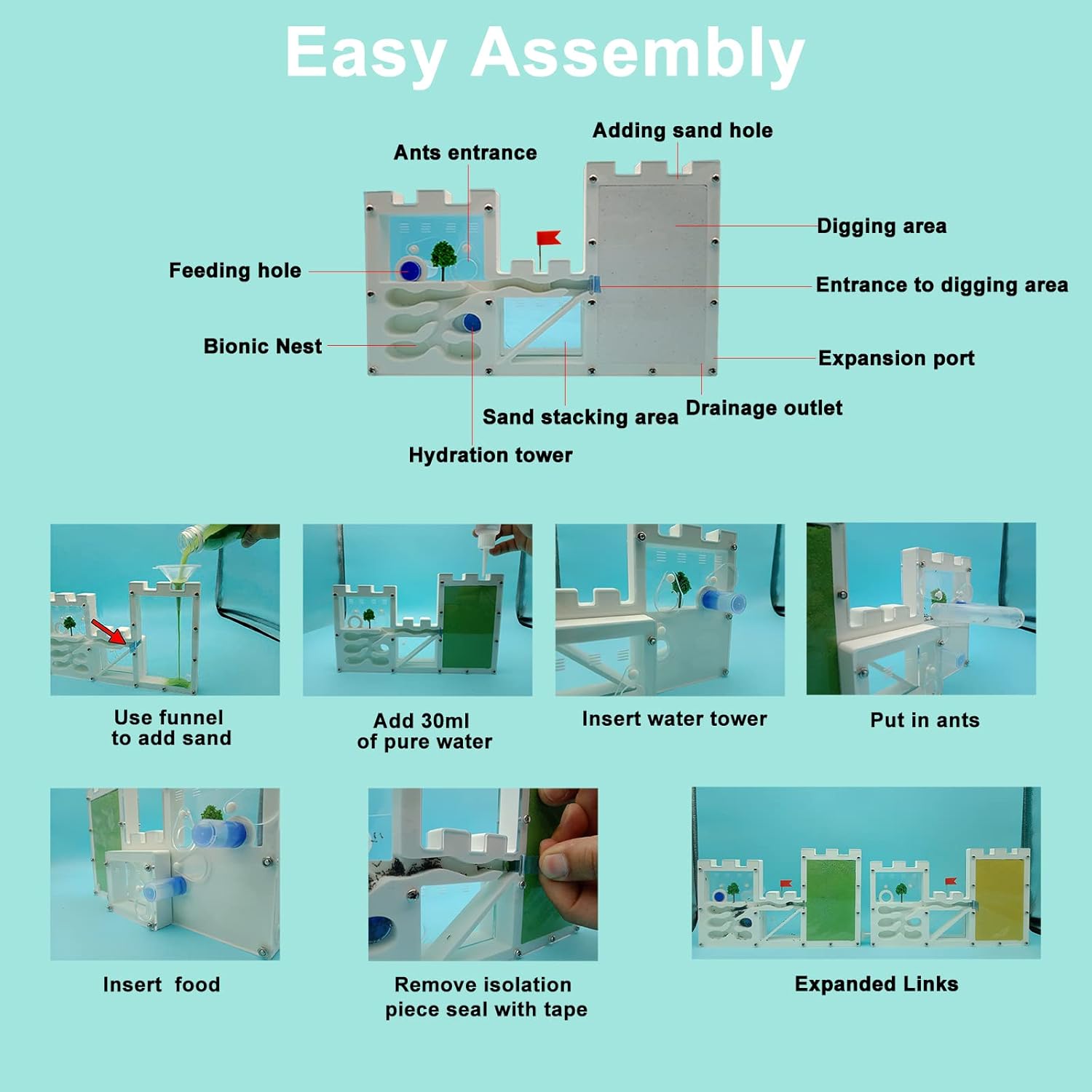 | Included Components | Ant farm 1, water filling bottle 1, tweezers 1, dropper 1, funnel 1, water tower 1, flag 1, instruction manual 1, sand and soil 1,Decorative trees 1 |
