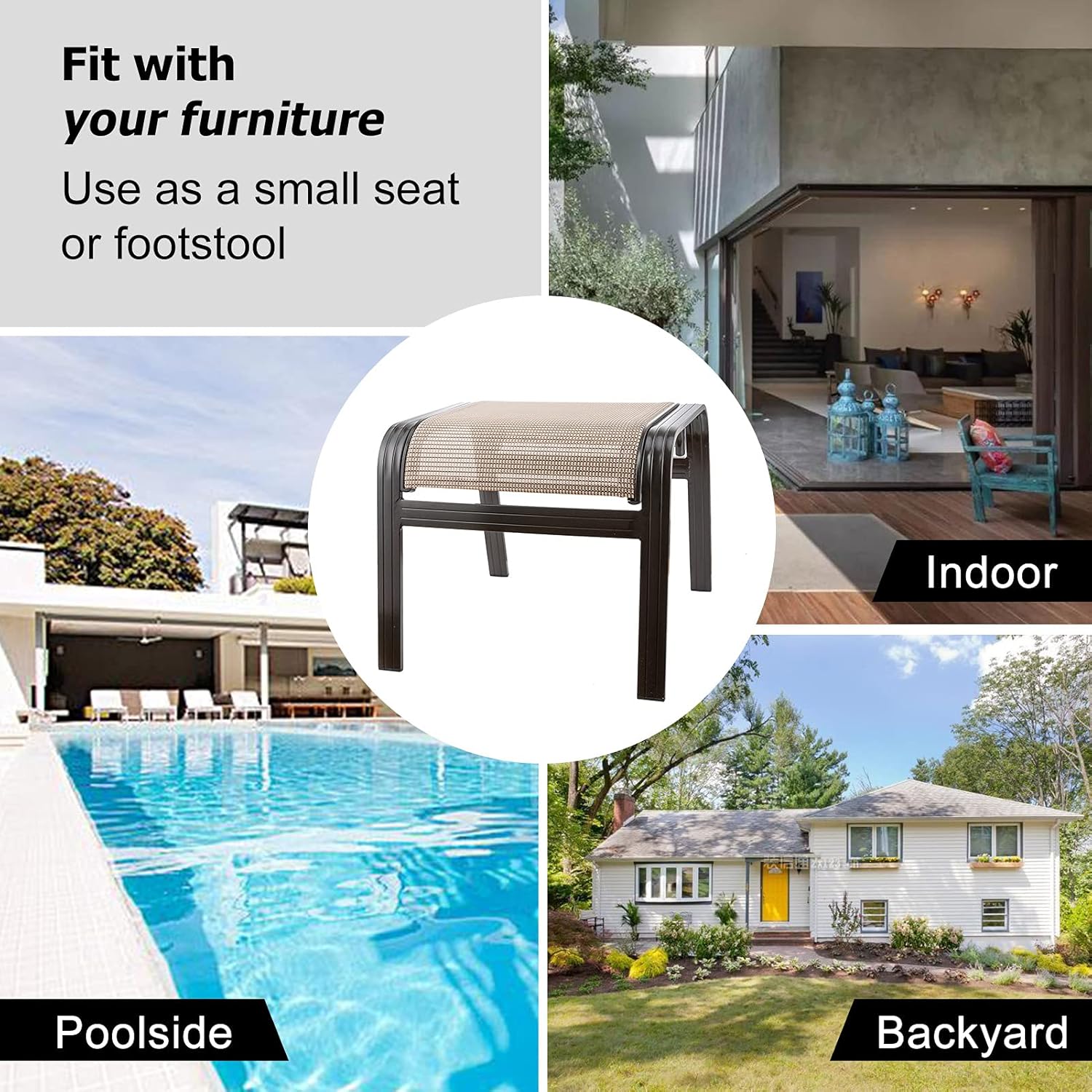 Are you finding suitable patio ottomans for your outdoor space? Maybe our Blacky Rabbit 2 pieces Outdoor Ottomans Footstools will help you solve this problem. They are made of high-quality fabric and high powder coated aluminum frames to ensure their quality. They will create a more comfortable outdoor experience for you and will be an ideal choice for outdoor amusement, suitable for porch, balcony, backyard, beach, poolside. Every detail is designed for incredible comfort.Whether working as a coffee table stand-in, footrest, or spare seat when everything else is full, there's really nothing an ottoman like this can't do! Enjoy your great time with your whole family or your valued friends on these excellent outdoor footrests.Feature:Suitable for summer use with breathable fabricEasy to install and lightweight for easy carrySolid Aluminum frame lays a good foundation for bearing capacityPerfectly fit your body line that embraces your body for comfortPerfect for kitchen, garden and patio with the concise appearanceSpecification:Color: As the Picture ShowsMaterial: Aluminum + TextileneOverall Size: 22inch x 20inch x 17inch (L x W x H)Weight Capacity: 250 lbsNet Weight: 5 lbsPackage includes:2 x Patio Ottoman1 x User Manual1 x Wrench