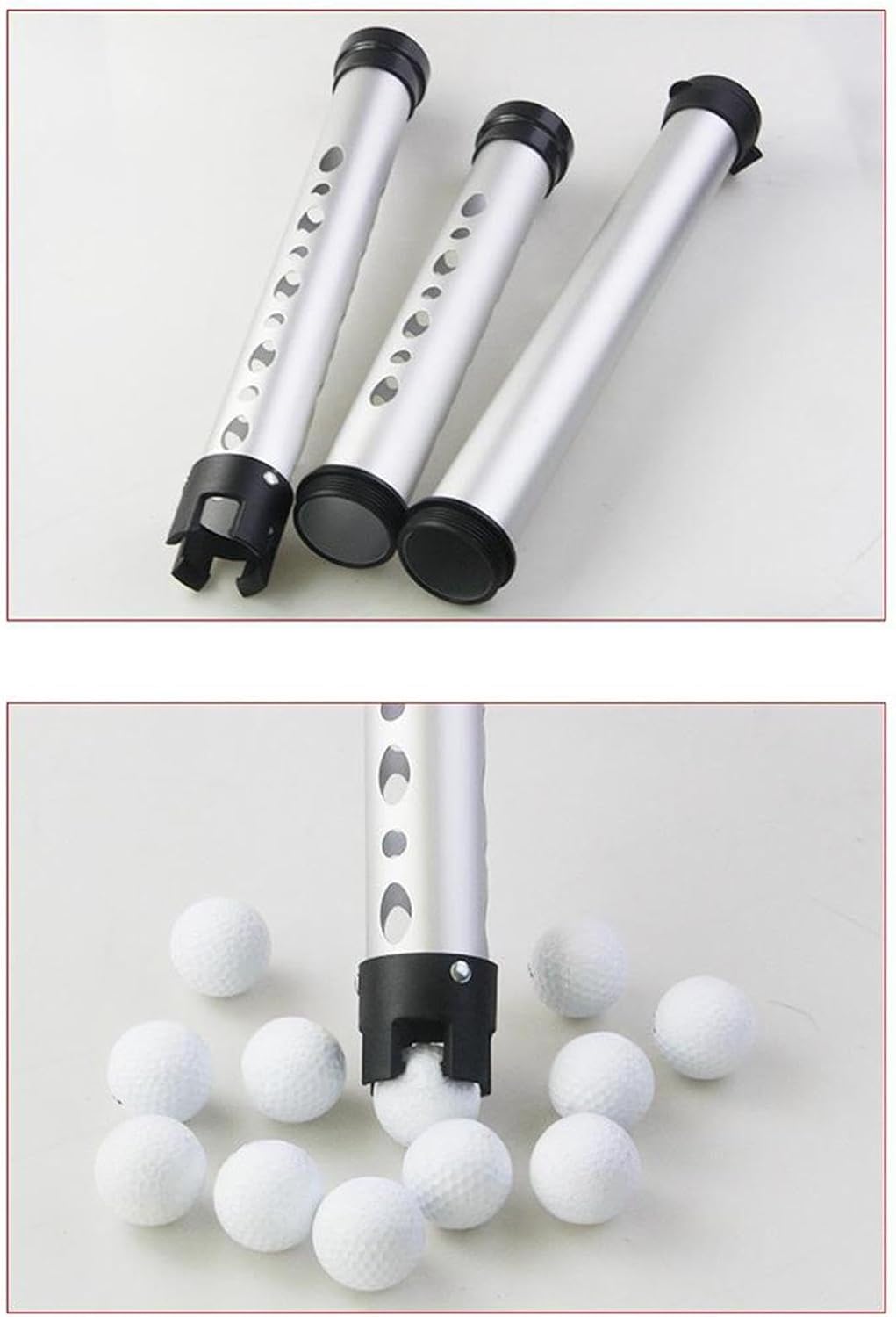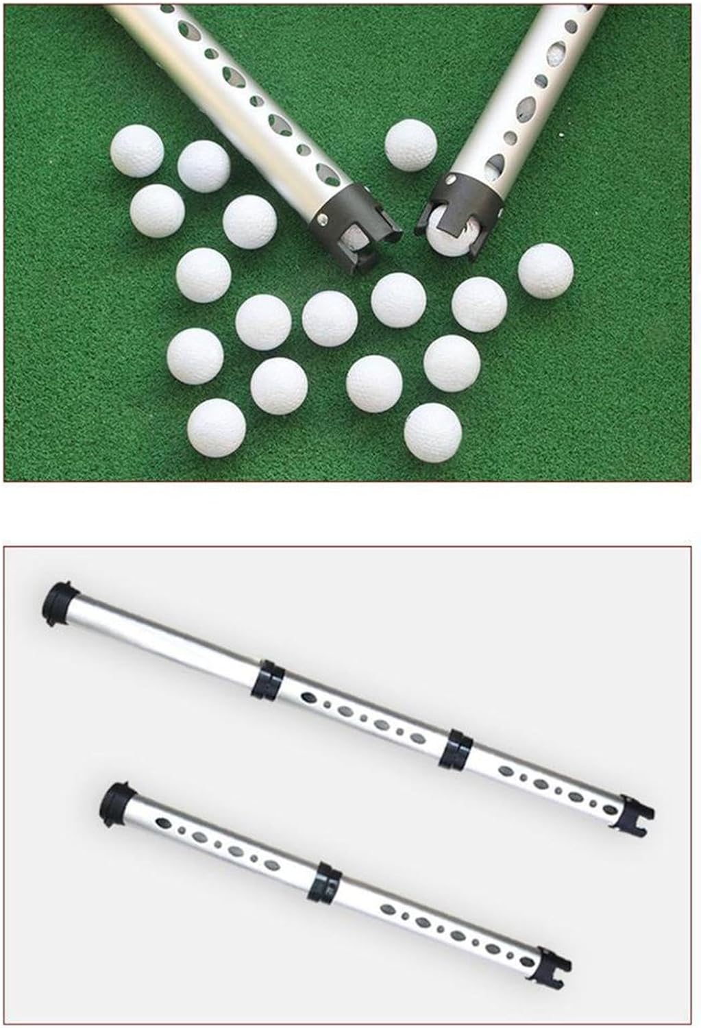 Description:- 【Ergonomic】Effortlessly pick up golf balls without bending over, thanks to a height designed for comfort—ideal for extended practice- 【Material】Constructed from thickened high strength aluminum alloy, this Golf Ball Retriever is sturdy, resistant to deformation, and built to withstand repeated use- 【Secure】Features a four claw mechanism that firmly grips each ball with a simple press; balls are held securely without damage or slipping out- 【Spacious】Large internal capacity allows you to collect multiple balls, boosting practice efficiency; perforated design lets you easily see the remaining ball count- 【Gift Choice】An ideal gift for golfers and sports enthusiasts alike; makes it easy to carry and store in any golf bagSpecification:- 2 Section: 76cmx7.5cmx7.5cm/29.92inchx2.95inchx2.95inch, Hold 18 Balls- 3 Section: 110cmx7.5cmx7.5cm/43.31inchx2.95inchx2.95inch, Hold 26 BallsPackage Includes:1 Golf Ball PickerNote:Please allow slightly errors due to manual measurement and different monitors.