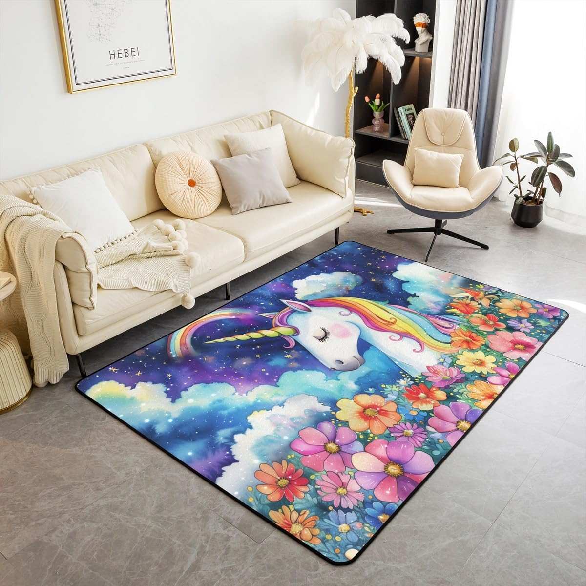 Tips: The carpet will arrive with temporary creases, you can repeat the process several times by rolling the carpet in the opposite direction of the creases and then spreading the carpet flat and pressing the edges of the roll with a heavy object to restore the carpet to its original state. We recommend using an iron to iron carpets at low temperatures more quickly Size: 2 sizes can be chosen of our rugs dimension: 3' x 5' x 0.39'' 100cm x 150cm x 1cm. 5' x 6'6'' x 0.39'' 150cm x 200cm x 1cm. Material: Made with 100% polypropylene. No chemicals used, No dye substance harming the health of you or your family. The rubber non slip design on the bottom of the area rug for bedroom is the safest protection. One piece is enough,you don't need to buy additional non slip carpet pads Machine washable: Soak in cold water for 10 minutes,then folded twice and put into the washing machine on gentle cycle, and then dry in the air.Do not use chlorine or bleach Features: With many different patterns to choose from, you will easily find rugs to coordinate with your decor. Our rug is widely used as the floor rug as well as a play mat, kitchen rug, bedroom rug, laundry mat, living room mat, office rug etc. Notes: Due to the light and screen setting difference, the item's color may be slightly different from the pictures Please allow slight dimension difference due to different manual measurement