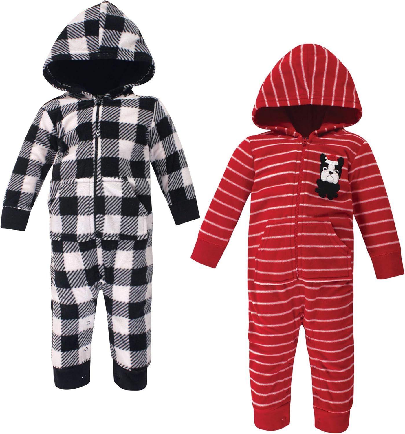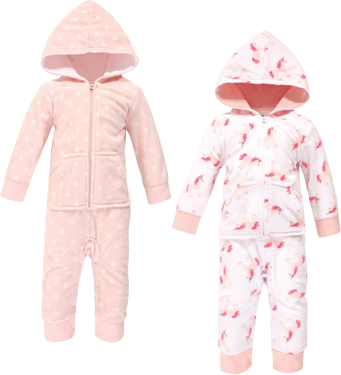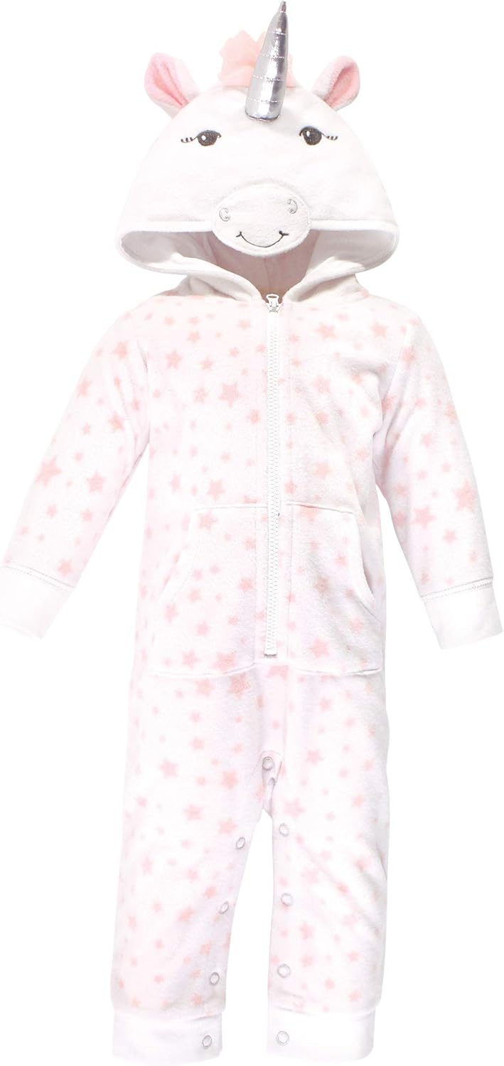 Hudson Baby fleece coveralls are perfect for chilly day outings! Our zip up Coveralls come with an attached hood to keep baby warm and snug. Ribbed cuffs stretch to help stay on baby's hands and ankles. These include an adorable pocket to keep little one's hands extra warm! With snaps on crotch and legs and chest zipper, these suits make for a no fuss, easy dressing experience to get outside!