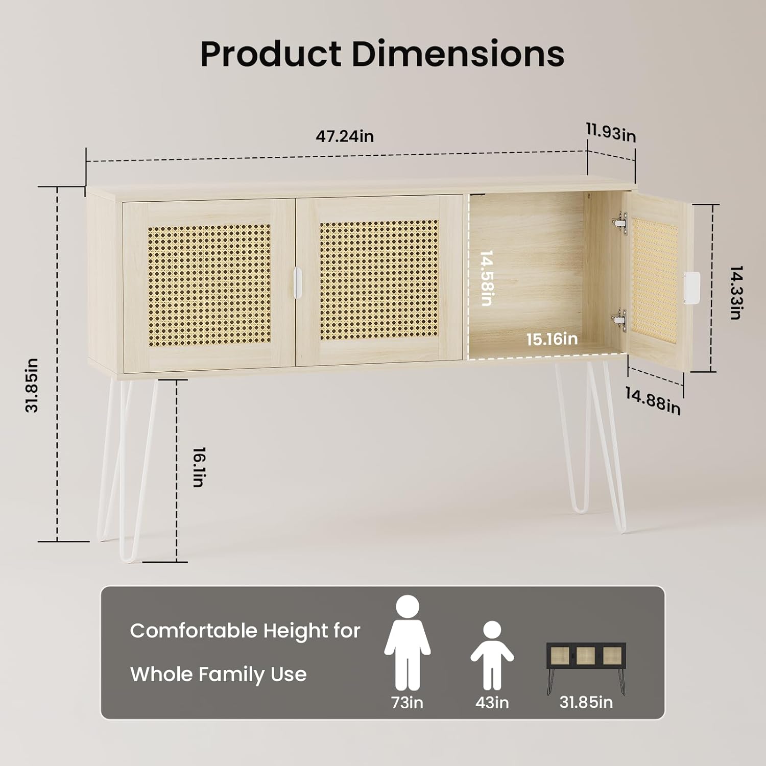 Netstar 47" Entryway Console Table with Storage, Rattan Cabinet Hallway Table with 3 Doors, Farmhouse Sofa Couch Table for Living Room, Foyer, Anti-Tip, Natural